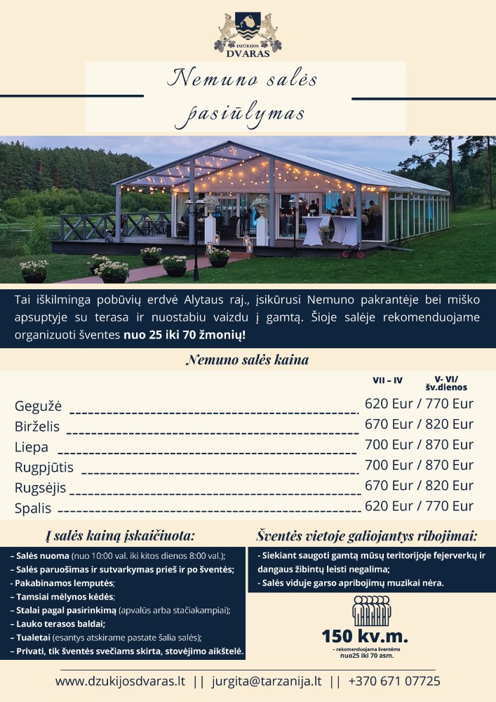 Kviečiame „Nemuno salę” užsakyti: +370671 07725